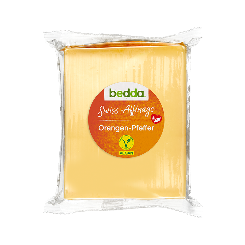 Mit den bedda Swiss Affinage Orangenpfeffer haben wir eine besonders fruchtige, vegane Käse-Alternative für die perfekte pflanzliche Käseplatte geschaffen.